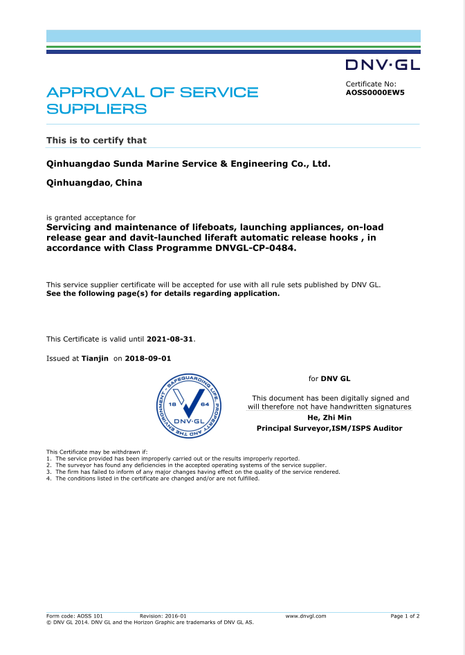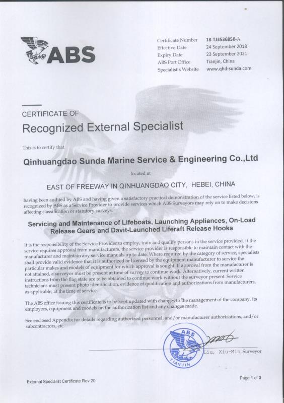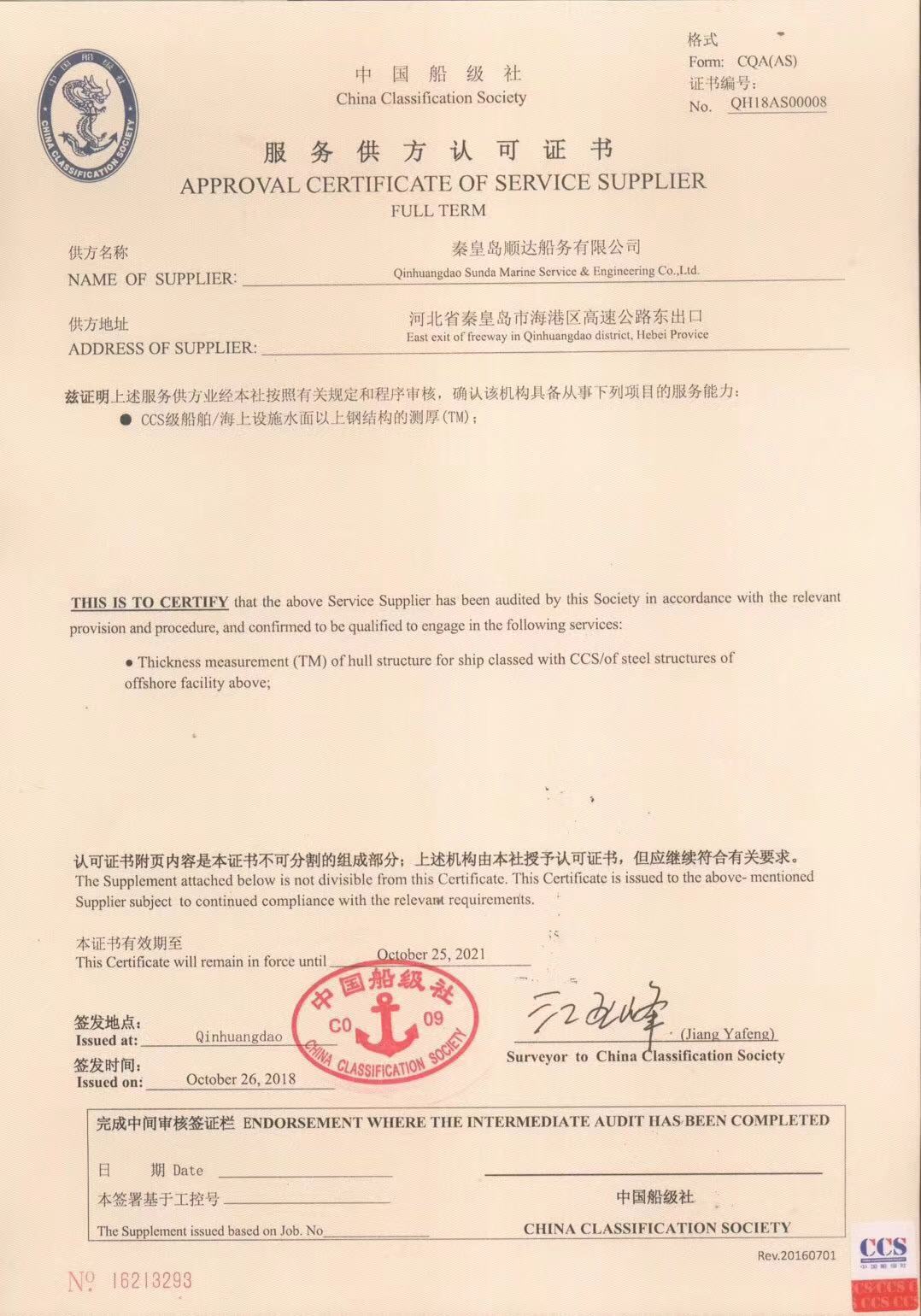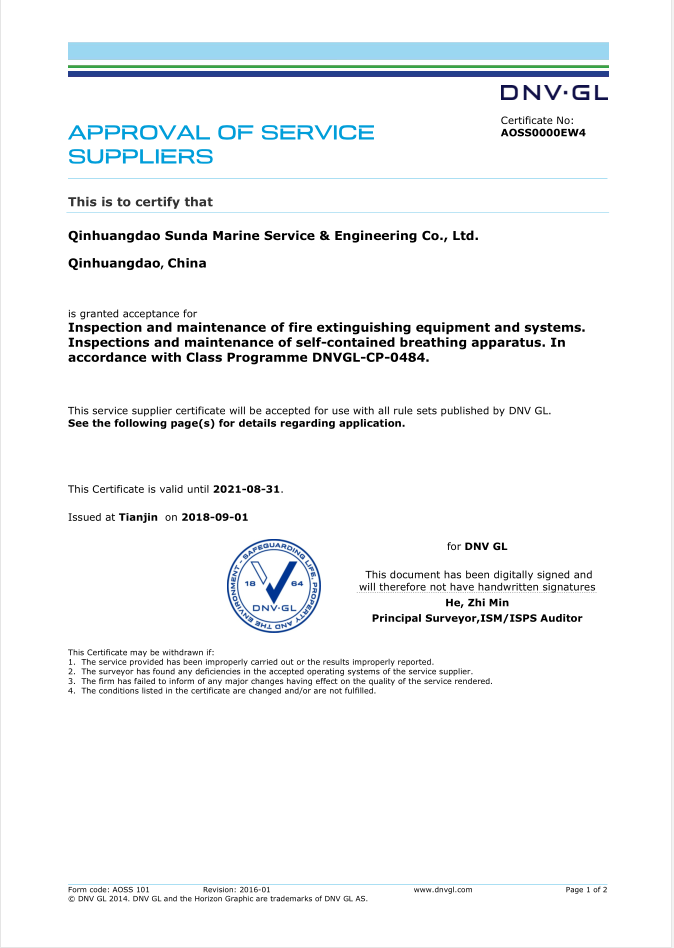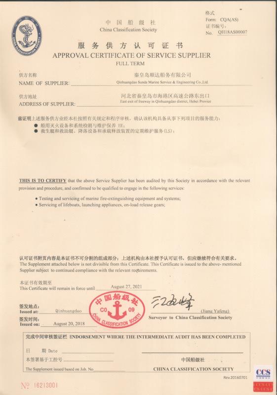 秦皇島順達船務有限公司位于美麗的海濱城市、中國北方著名的能源輸出大港--秦皇島。公司從事于船舶修理、物料供應、水下檢測、船體測厚、消防救生設備及救生艇檢驗、電氣自動化修理等服務。 公司自1997年成立至今,先后為國內外船東修理、檢驗各類船舶萬余艘,積累了豐富的施工經驗。公司現有場地100余畝,員工30余人,以及工程用車若干臺。我們公司一直本著嚴以律己、真誠待人、精益求精、信譽至上的經營理念,以優(yōu)質的服務、專業的施工、合理的收費,得到了國內外船東的廣泛認可,贏得了良好的口碑和信譽。 公司已取得了中國船級社(CCS)、美國船級社(ABS)、日本船級社(NK)、德國船級社(DNV GL)等各個船級社的消防救生和救生艇檢驗資質, ...